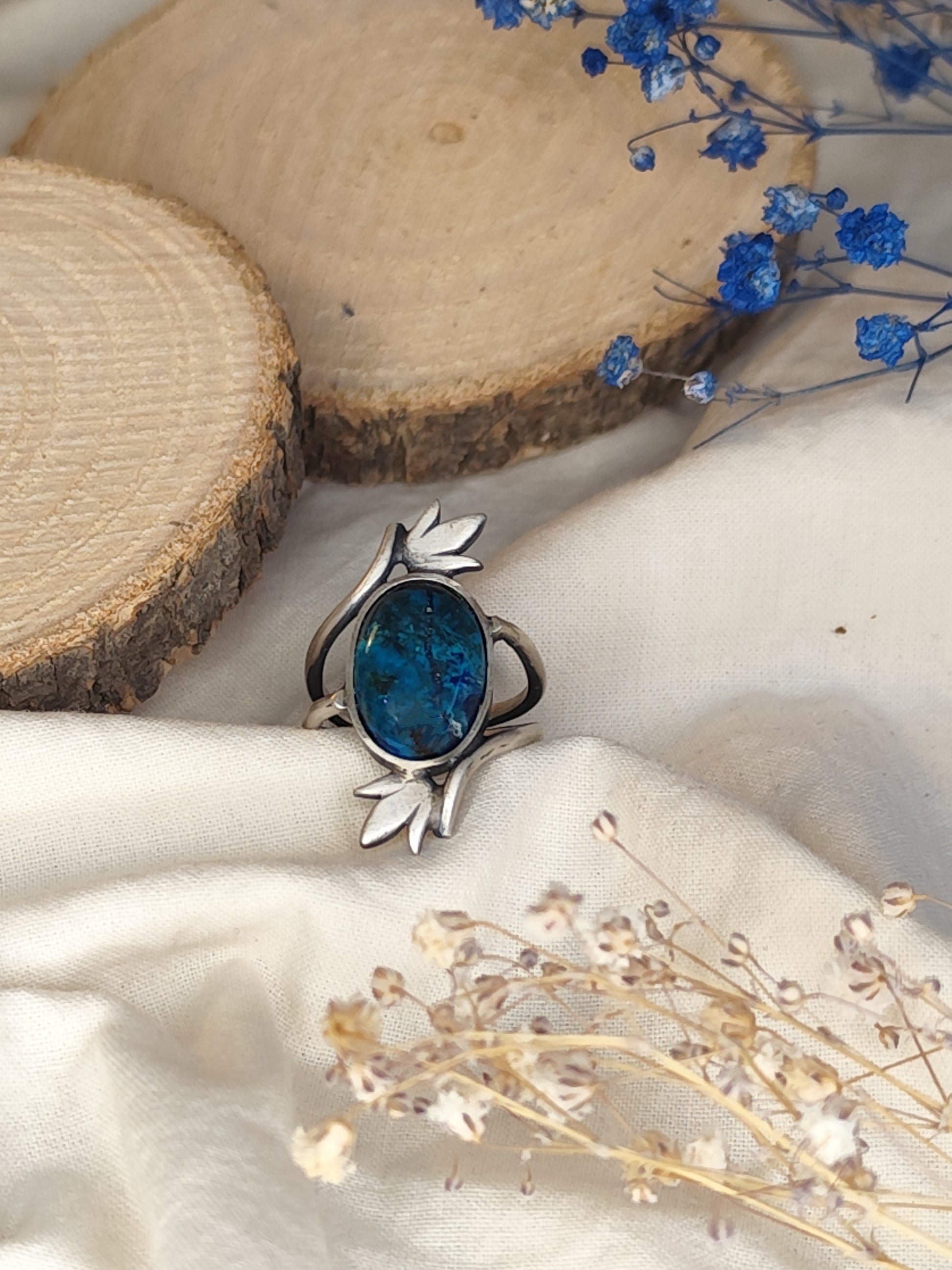 La crisocola azurita es una piedra ideal para aquellos que buscan encontrar su equilibrio emocional, mejorar su comunicación y fortalecer su conexión espiritual. Su vibración suave y reconfortante hace de este anillo una pieza única y especial, perfecta para el uso diario o para ocasiones especiales.