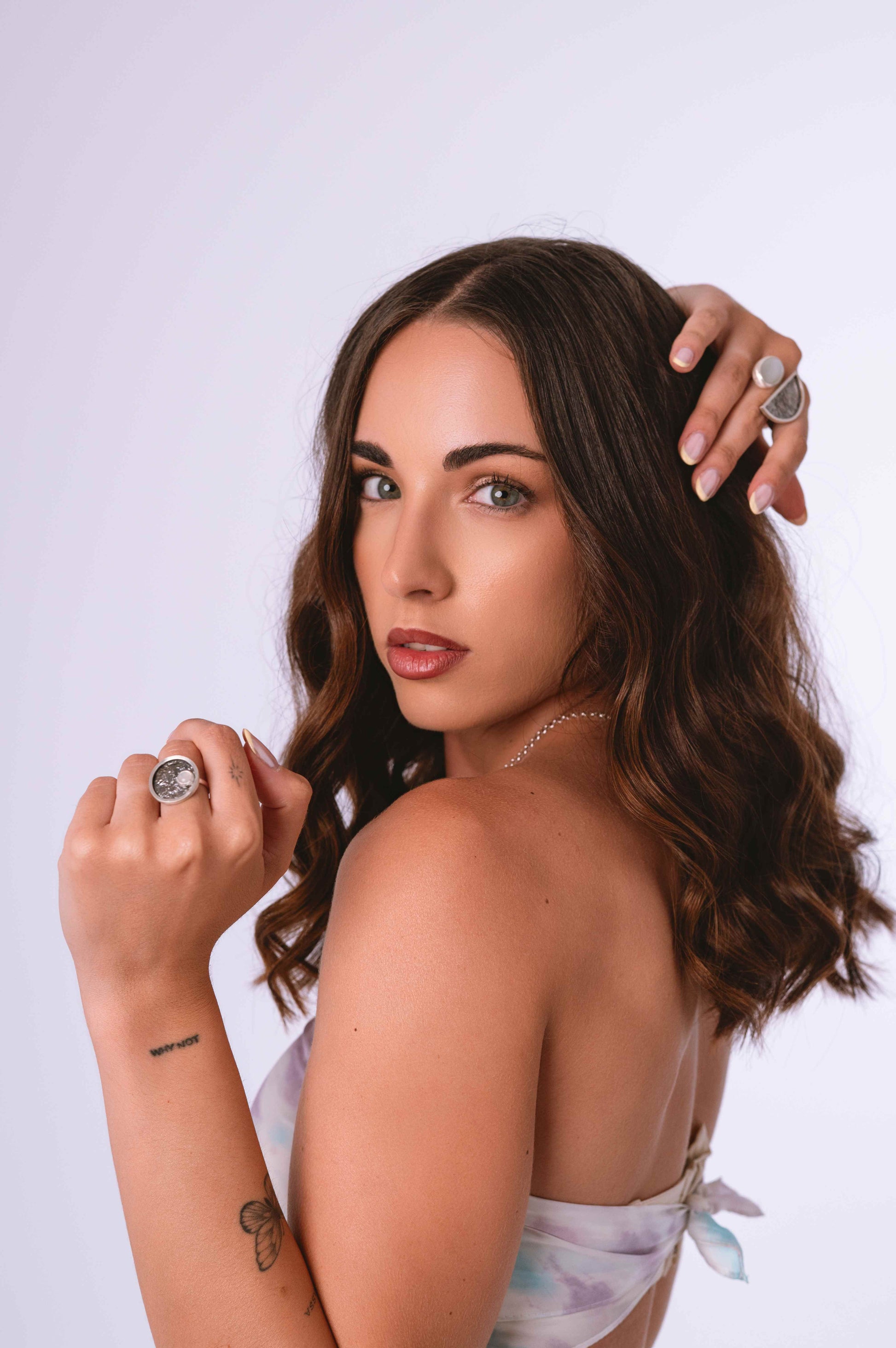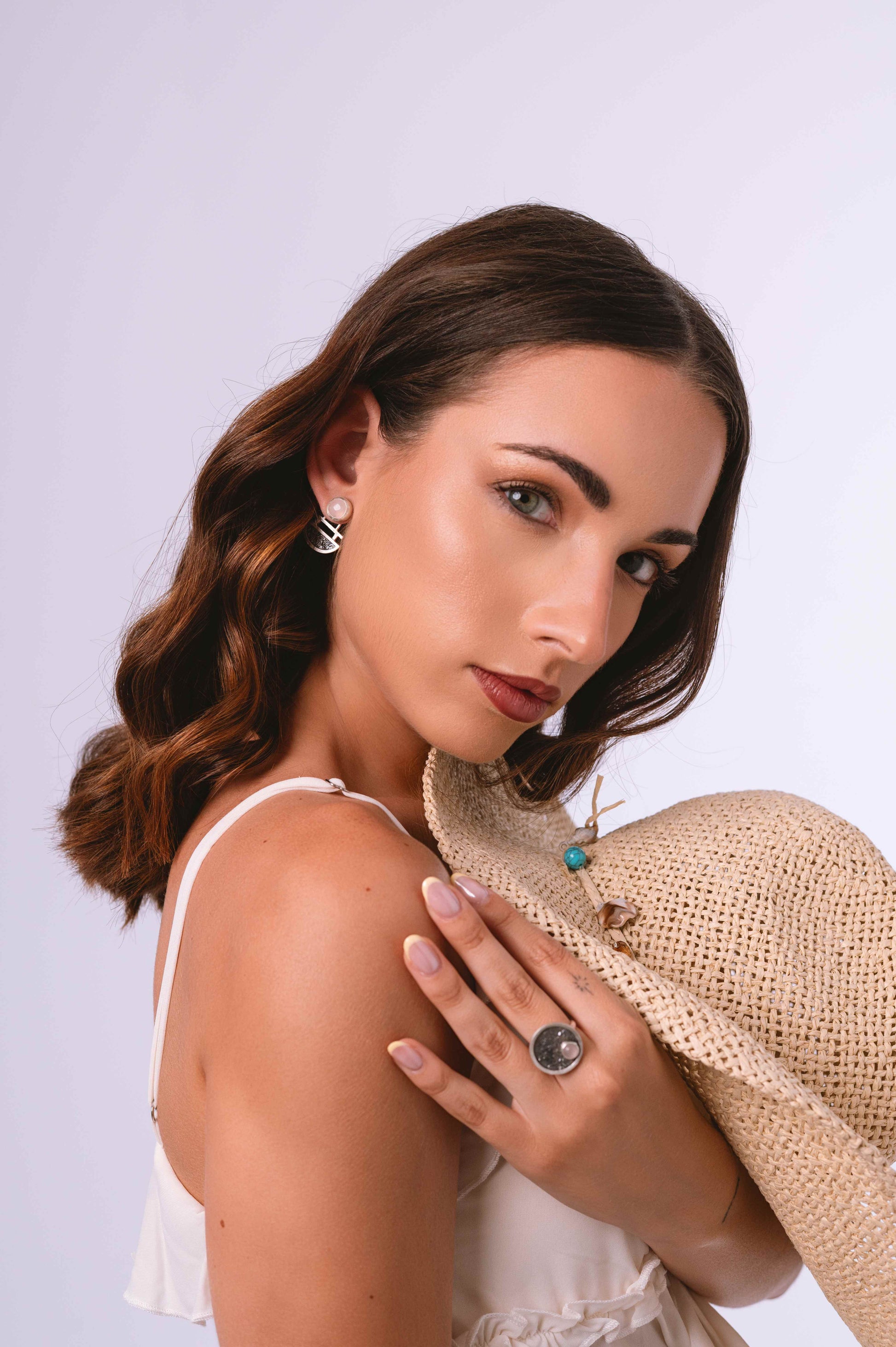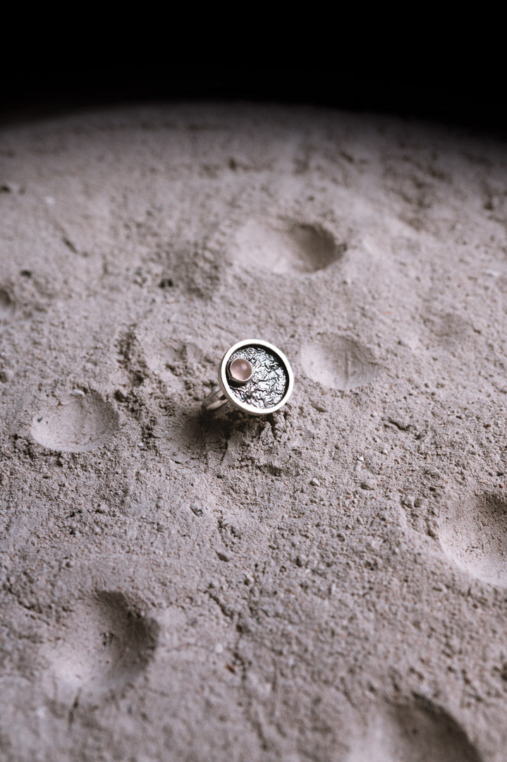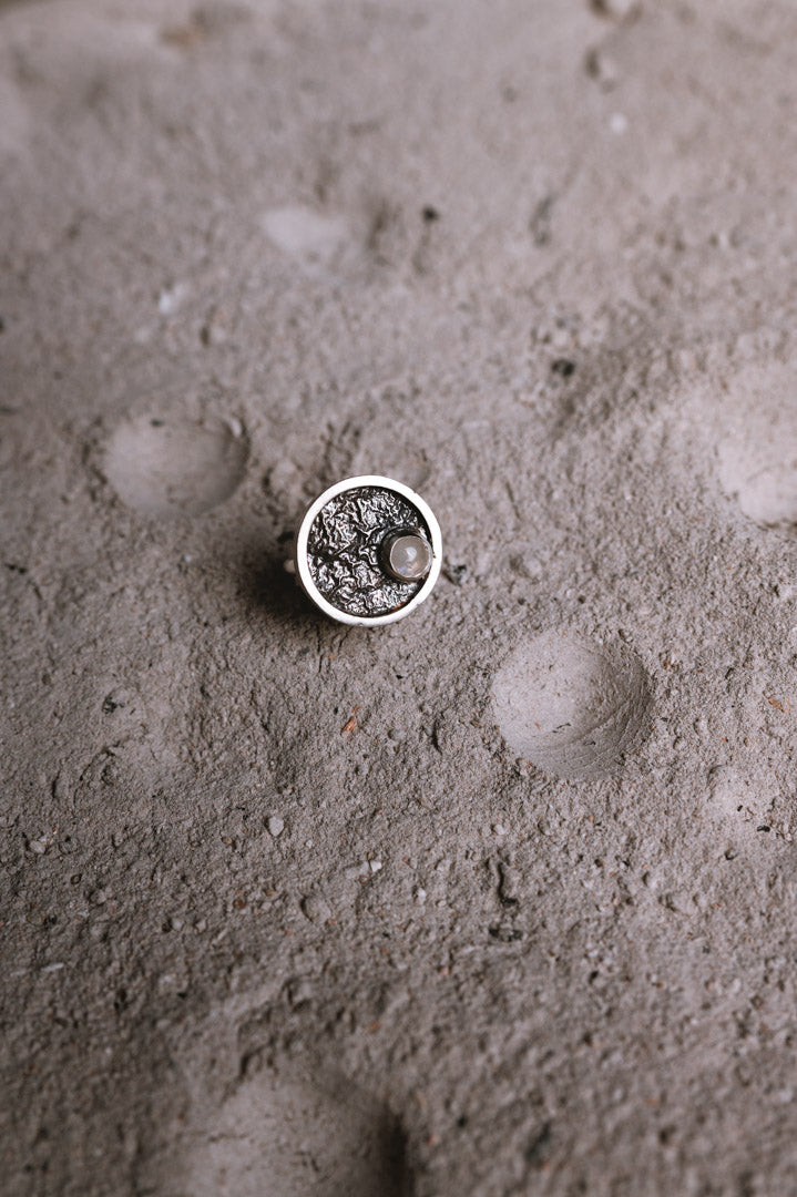 El Anillo Zenit es un portal a la plenitud, un reflejo de la Luna Llena en su máximo esplendor. Cada círculo perfecto de plata de ley 925 abraza una gema natural central, símbolo de la culminación y la luz más brillante de tu camino.
