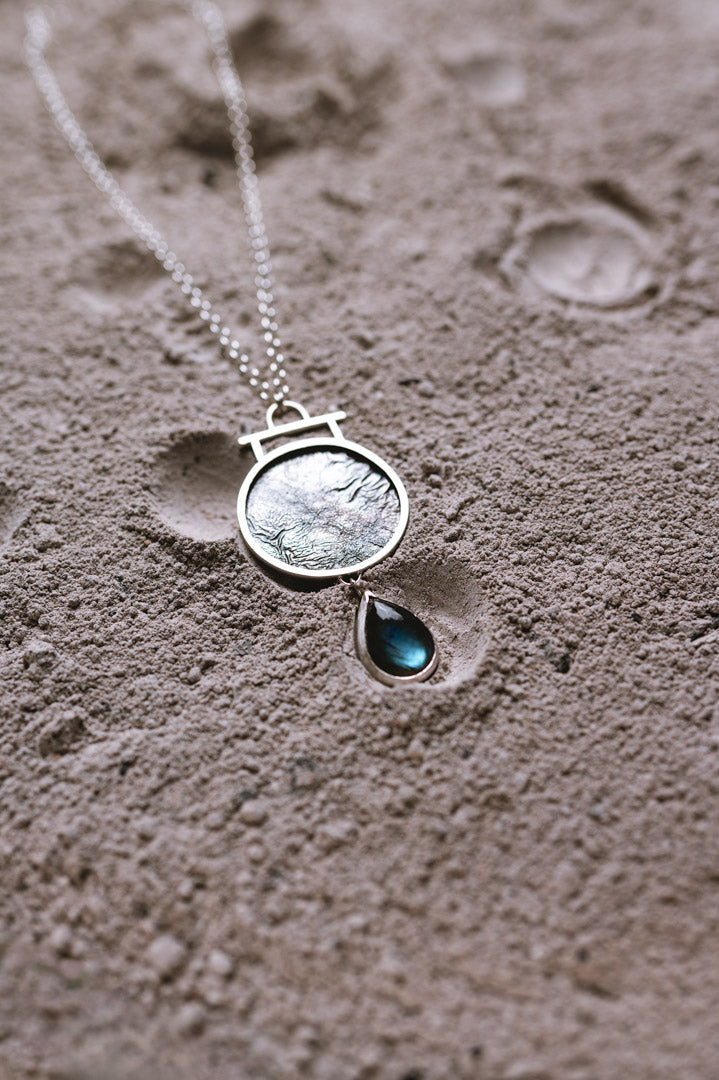 El Colgante Nebulosa es un fragmento del cosmos que late con tu propia chispa creadora. En su corazón, la enigmática Labradorita desvela sus iridiscentes destellos, como estrellas naciendo de la bruma cósmica, invitándote a explorar el vasto potencial que reside en tu interior.