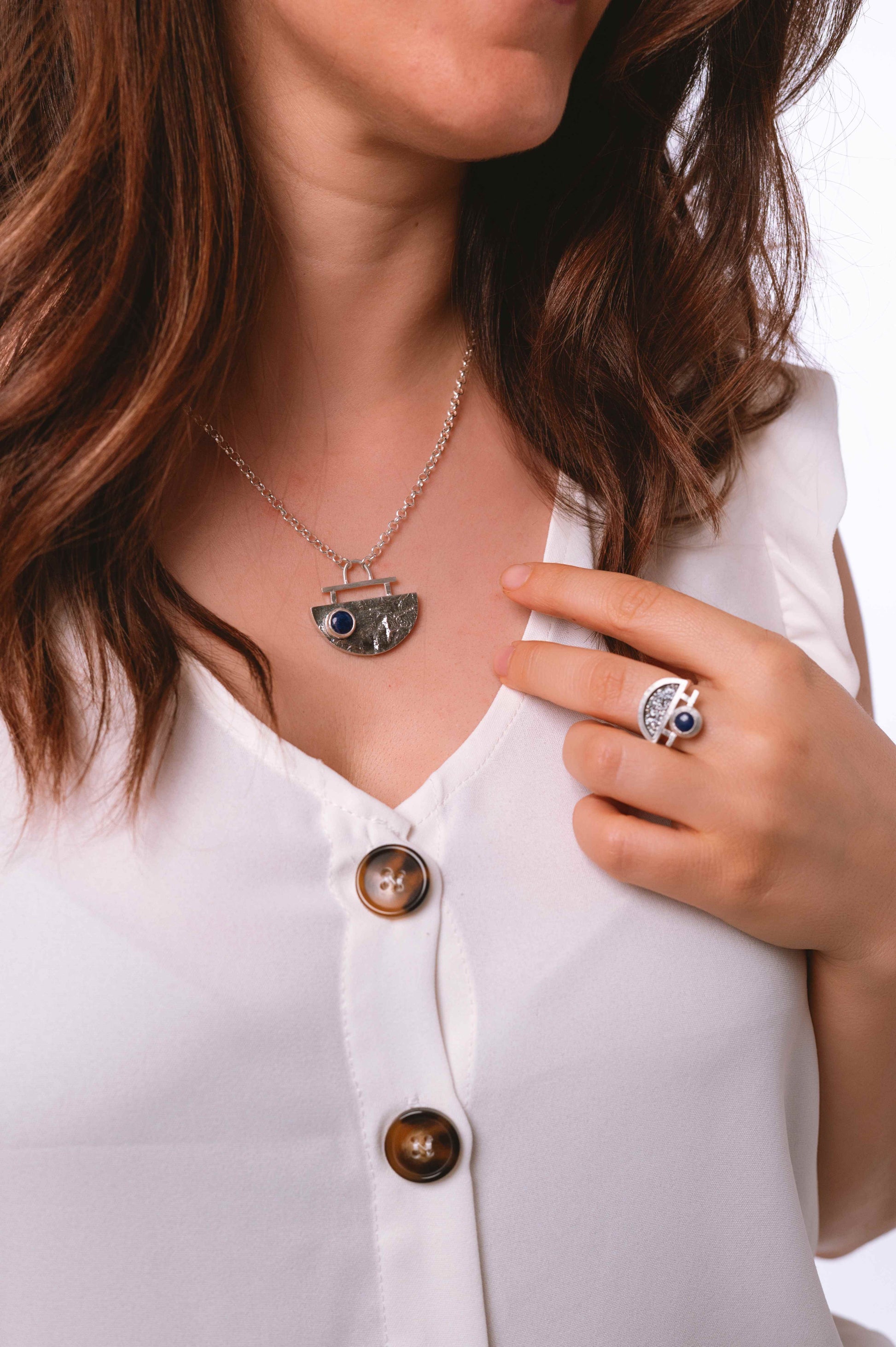 Este talismán de la colección Alquimia Lunar te acompaña a explorar tus verdades más íntimas. Elige la protección y la fuerza de transformación de la Malaquita, la visión interior y la verdad del Lapislázuli, o la serenidad y el equilibrio emocional de la Amazonita.